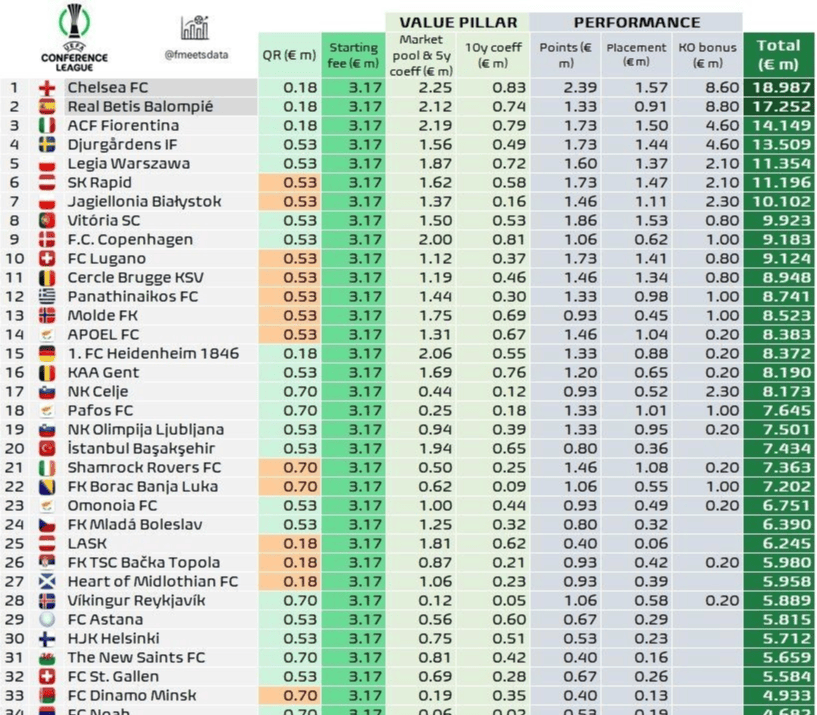 切尔西的情况则更为明显,上赛季欧协联冠军他们在13场比赛中仅获得2598.7万欧元,平均单场奖金约199.9万欧元。而本届世俱杯中,切尔西单场奖金接近1400万欧元(约1637万美元),差距显著。Skysports曾对世俱杯与欧冠、英超及足总杯奖金进行对比,结果显示世俱杯虽不是奖金最高的赛事,但因场次少、时间短,性价比极高,尤其是夺冠球队更是收益颇丰。
